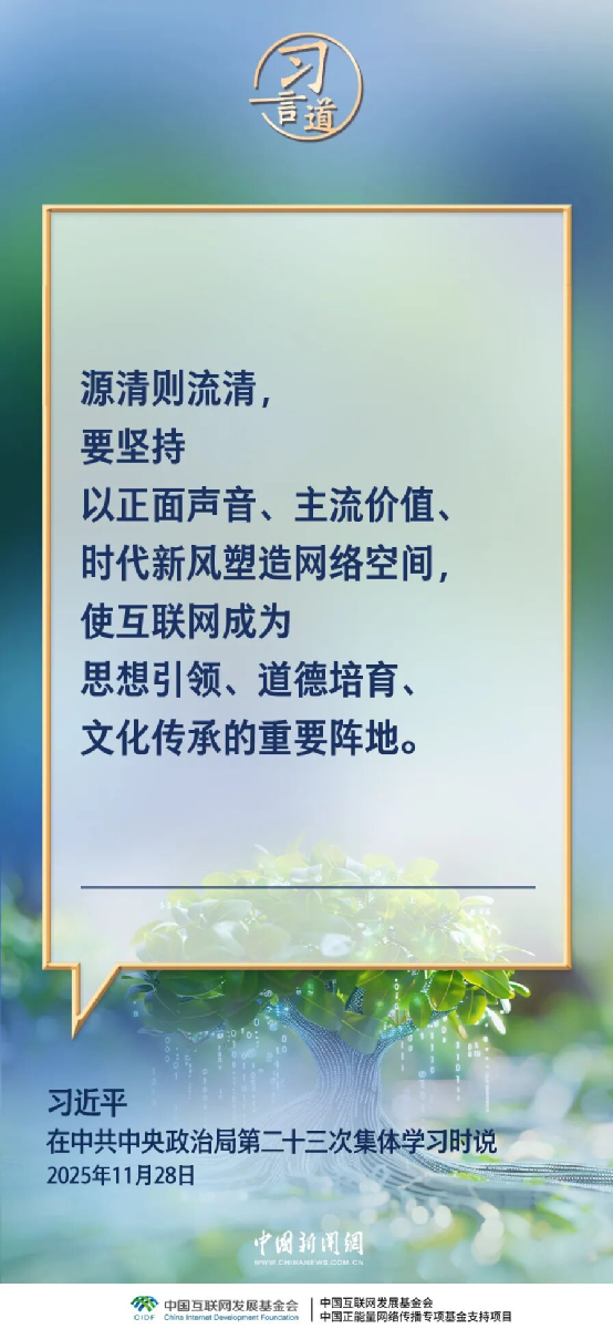 中共中央政治局11月28日就加强网络生态治理进行第二十三次集体学习。中共中央总书记习近平在主持学习时强调——